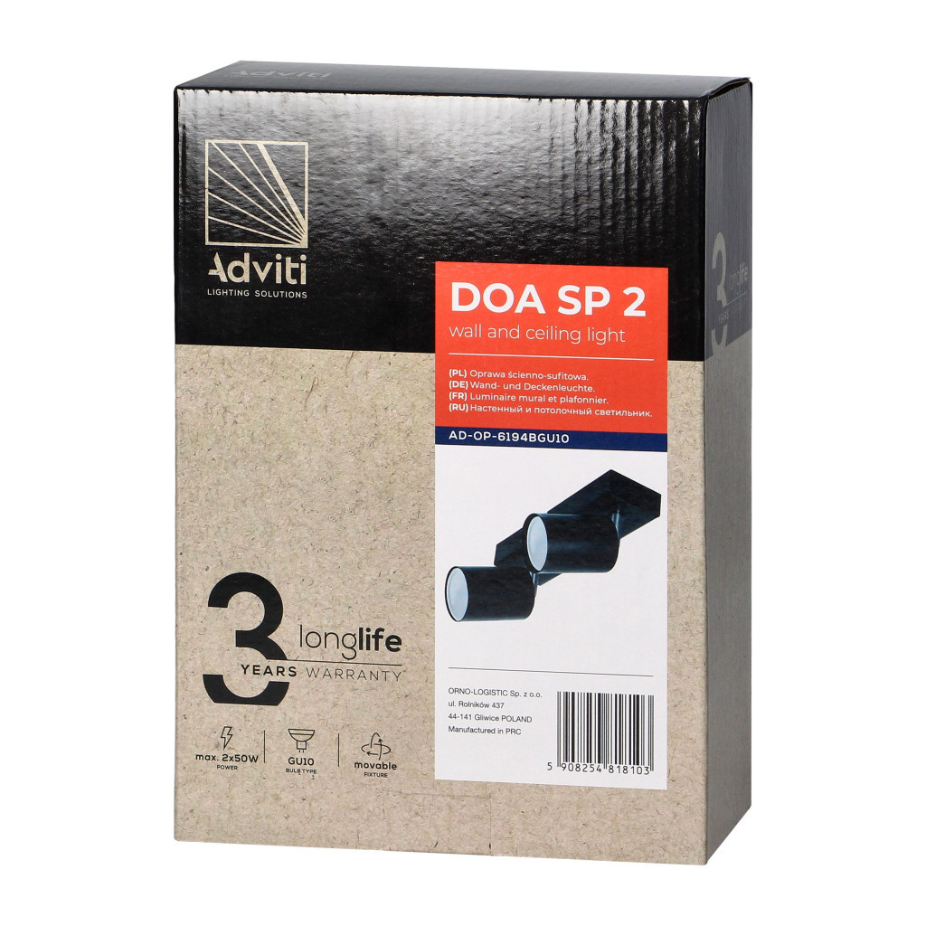 Adviti spot lámpa  fali és mennyezeti  fekete 2x GU10