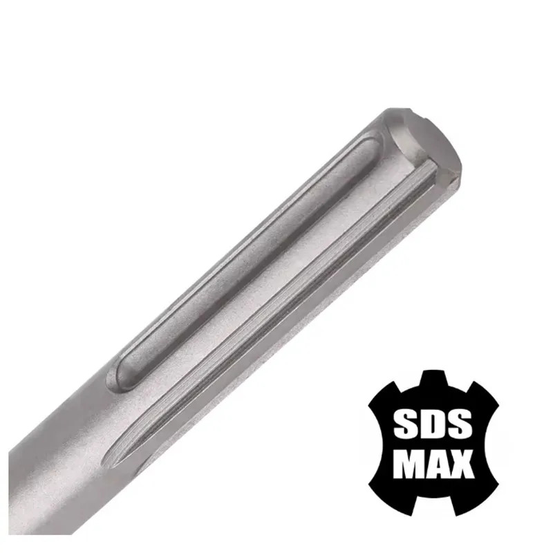 Az SDS MAX áttörőfúró 3 vágó hegyével beleüt az anyagba. Kiváló minőségű keményfémből készült, amelyet vákuum forrasztottak és edzettek a stabilitás és a tartósság érdekében. A fúró U-alakja, a két spirális horony és a kúpos tengely megakadályozza, hogy a por és a betonrészecskék eltömítsék. Használja 45-80 mm átmérőjű lyukak fúrására.