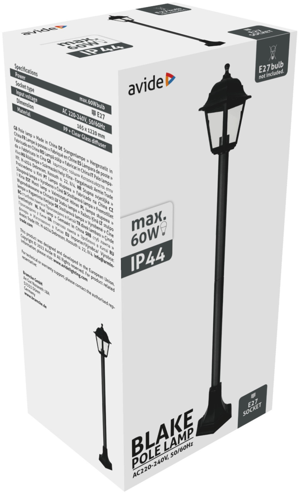 Avide Kültéri Álló Lámpa Blake 1xE27 1200mm Fekete IP44