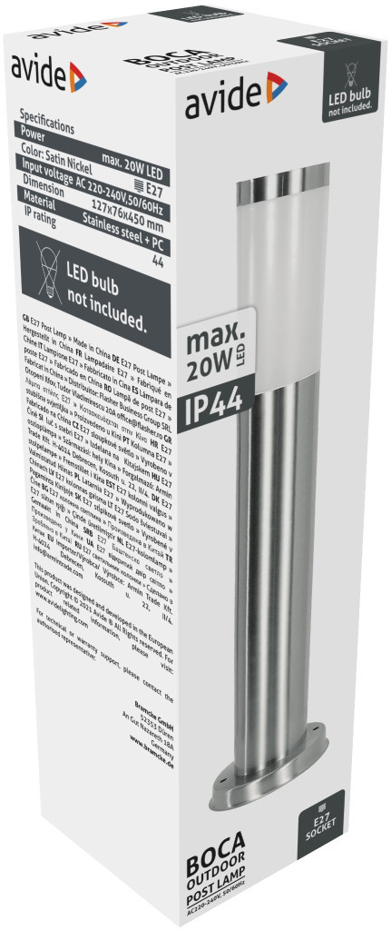 Avide kültéri álló lámpa Boca 1xE27 450mm IP44 Szatén Nikkel