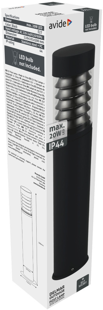Avide kültéri álló lámpa Delmar 1xE27 500mm IP44 Fekete