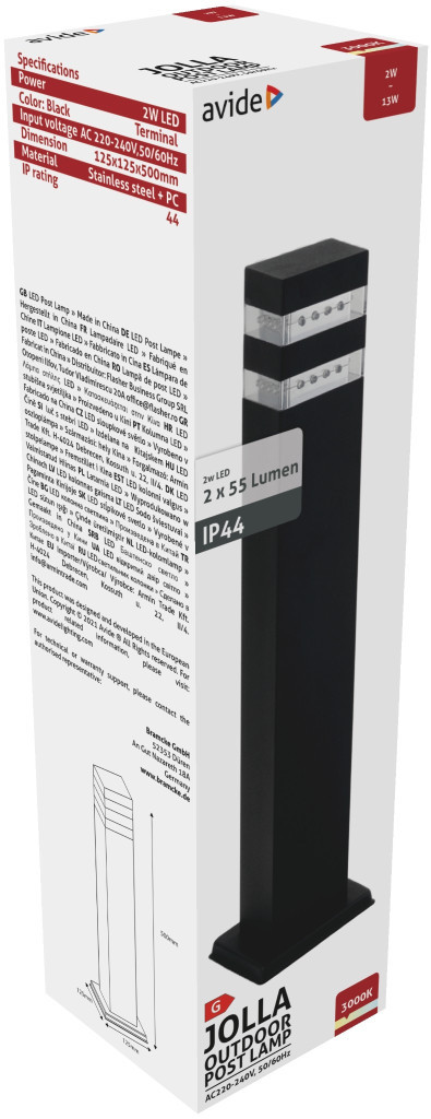 Avide kültéri álló lámpa Jolla LED 2W WW 500mm IP44 Fekete