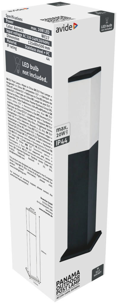 Avide kültéri álló lámpa Panama 1xE27 500mm IP44 Antracit