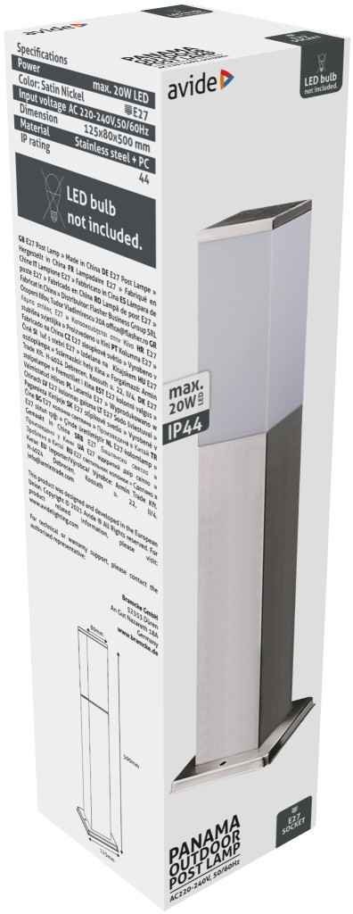 Avide kültéri álló lámpa Panama 1xE27 500mm IP44 Szatén Nikkel