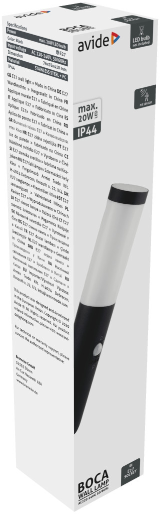 Avide kültéri fali lámpa Boca 1xE27 PIR IP44 Fekete
