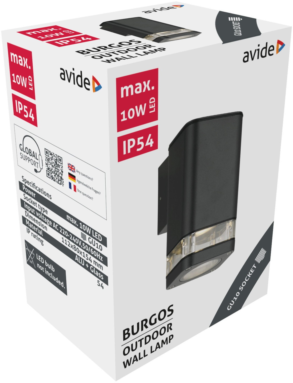Avide kültéri fali lámpa Burgos 1xGU10 IP54