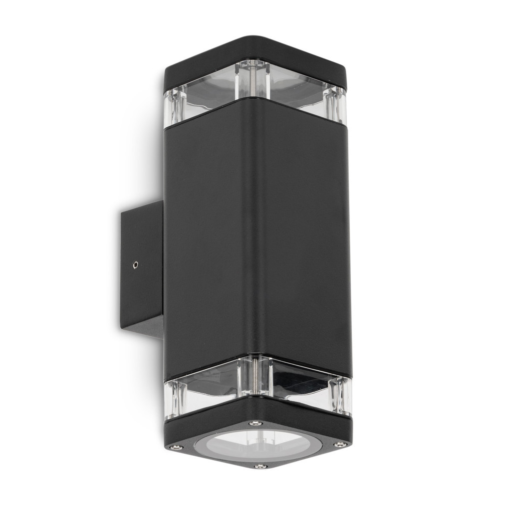 Avide kültéri fali lámpa felületre szerelhető fém üveg házas lámpatest GU 10 foglalattal, IP54 védelemmel mely alkalmassá teszi kültéri használatra.