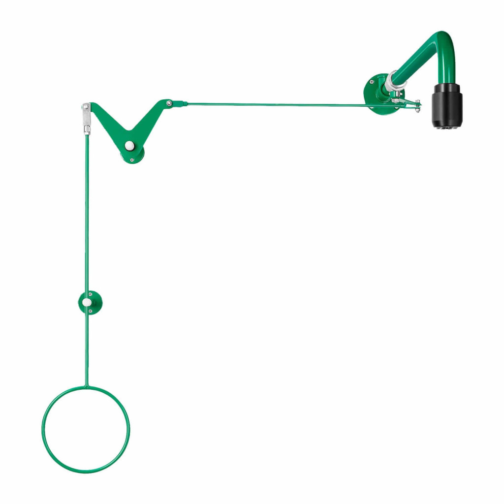 Ajtó fölé szerelhető biztonsági testzuhany húzókar-eltereléssel