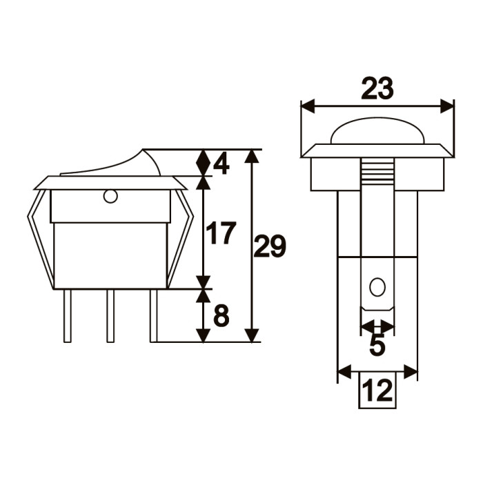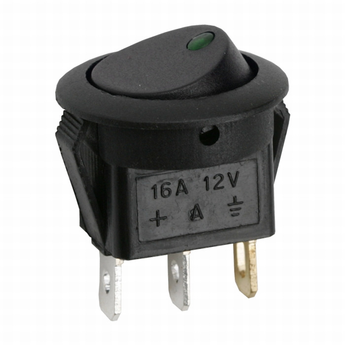 Széles körben alkalmazott kör alakú, fekete billenőkapcsoló. Felkapcsolt állapot jelzéséről zöld visszajelző LED gondoskodik, így távolról is ellenőrizhető a kapcsoló állapota. Ideális felhasználási terület: elekromos gépekbe, berendezésekbe, gépjárművekbe történő beépítése.