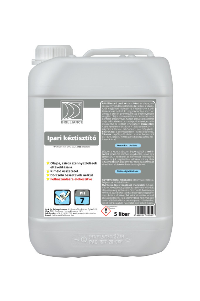 A Brilliance® Ipari kéztisztítóval az olajos, zsíros szennyeződéseket lehet eltávolítani a kézről. Akár napjában többször is használható a bőr kiszáradása nélkül. Ez nagyon fontos, mert az amúgy is erősen igénybevett kéz érzékenyebben reagál az olajos szennyeződésekre. A termék nem dörzsölő összetevővel, hanem szerves oldószerrel oldja le kíméletesen a szennyeződéseket, ezzel is csökkentve az irritáció lehetőségét.