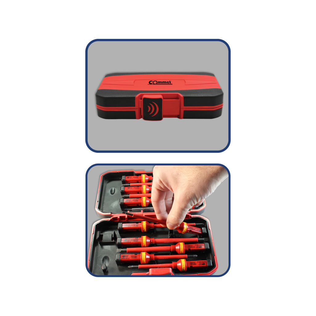 A 13 részes szigetelt csavarhúzó készlet professzionális elektromos munkákhoz készült. A készlet 4 lapos, 4 csillag, 3 torx és 1 fázískereső csavarhúzót tartalmaz. A ergonomikusan kialakított markolatt megkönnyítik a használatot. Az IEC 60900 szabvány szerinti tanúsítás.