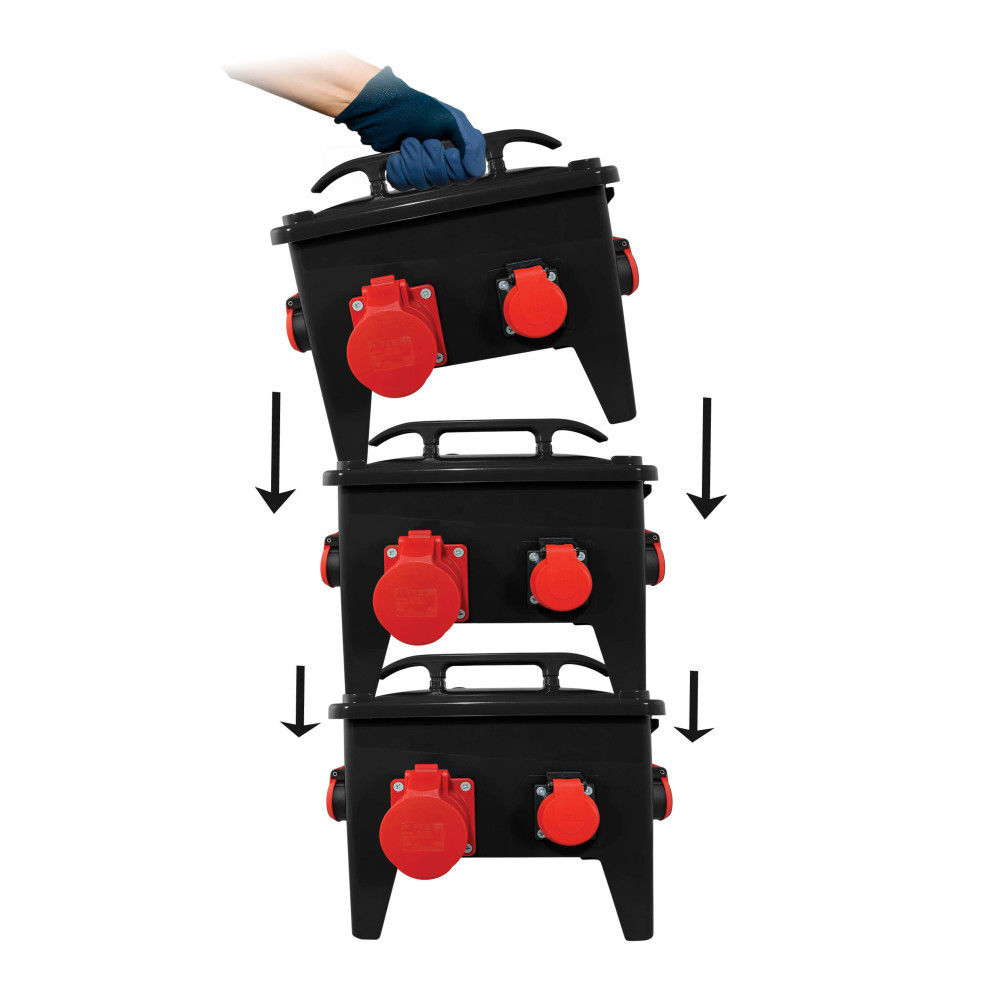 Lehetőségünk van akár több áramelosztó egymásra helyezésére is, ezzel értékes helyet takaríthatunk meg a felhasználás során.