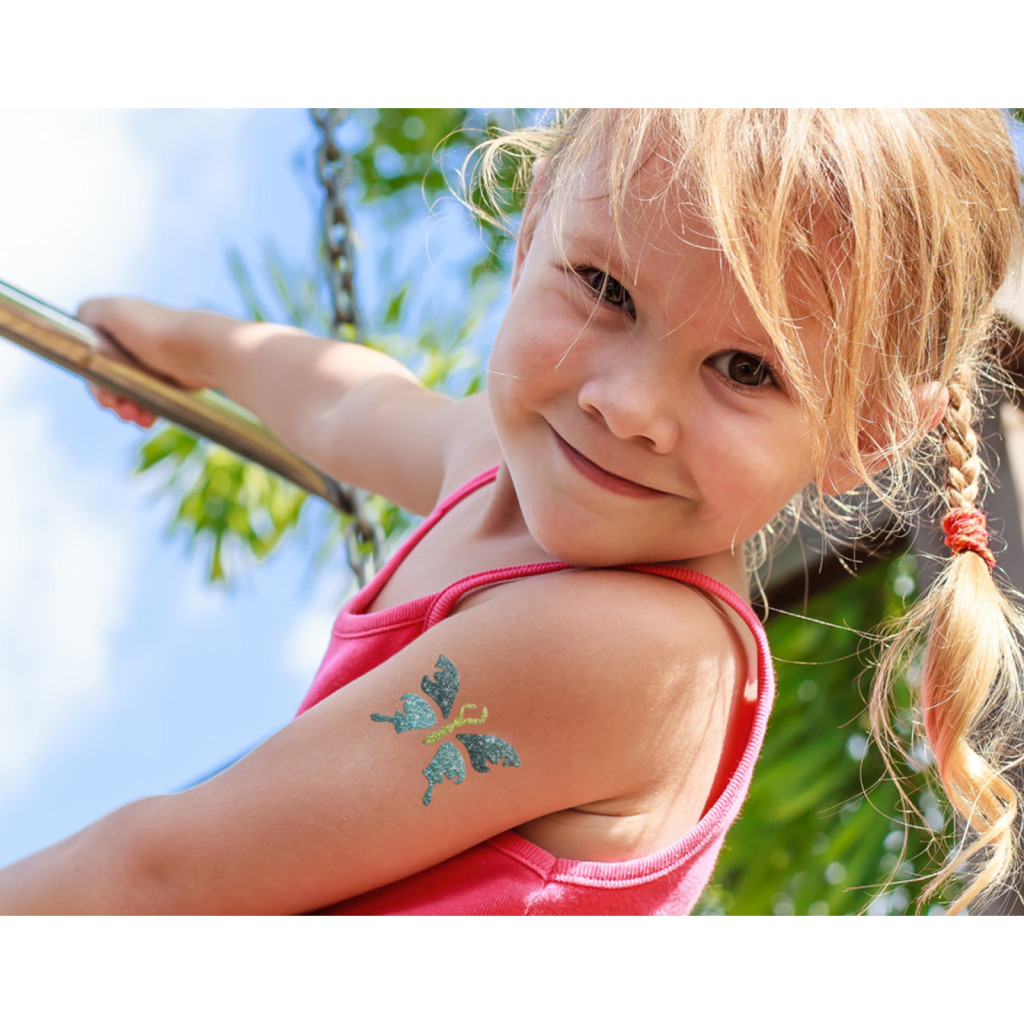 - A legerősebb nyári napfényben is élénk színű marad, így gyermeke sokáig élvezheti a csillogó tetoválását