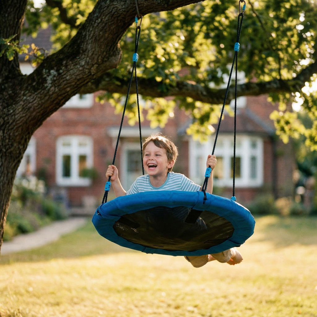 A 90 cm átmérőjű fészekhinta igazi kedvenc a gyerekek körében: kényelmes, stabil és többféleképpen használható. A kör alakú ülőfelület biztonságos és kellemes hintázást biztosít, legyen szó pihenésről, játékos ringatózásról vagy akár fekvő helyzetű lazításról. Ideális választás kertbe, udvarra vagy játszótérre.