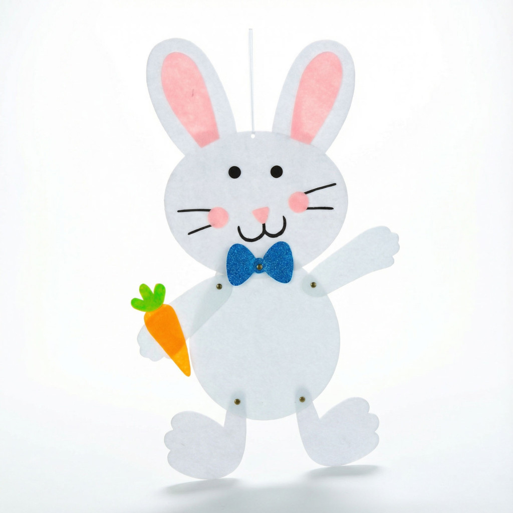 Hozzon tavaszi hangulatot otthonába ezzel a bájos húsvéti nyuszival! A filcből készült függő dekoráció a vidám masnijával minden helyiséget feldob. Könnyedén felakasztható ajtóra, falra, ablakra vagy akár gyerekszobába is. Kiváló választás húsvéti díszítéshez, ünnepi kompozíciókhoz vagy ajándék kiegészítőjeként