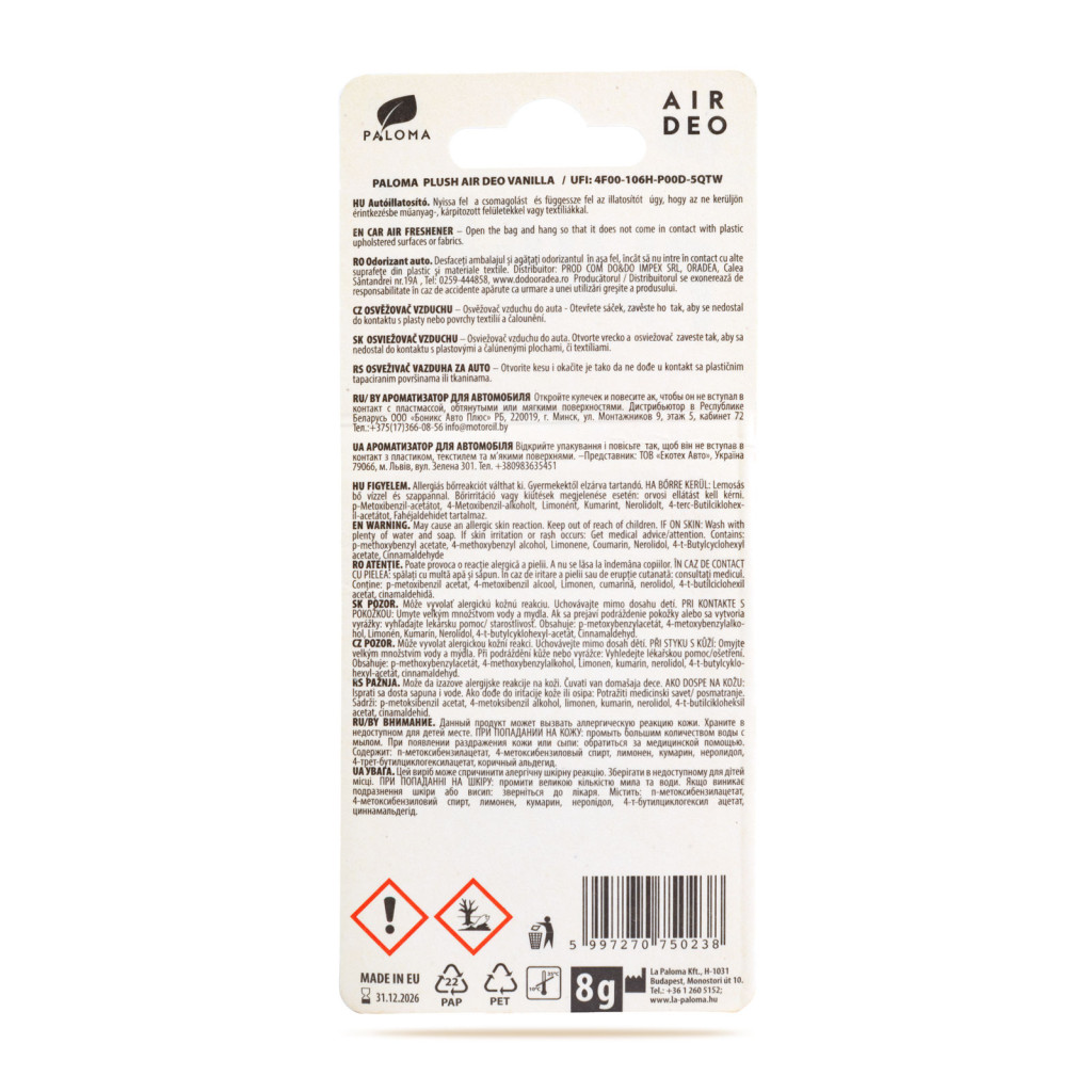 Megérkeztek a legújabb Paloma illatosítók! Vidám, dekoratív és kellemes illattal rendelkeznek. Mi kell még egy nagyszerű utazáshoz? Csak nyomja meg és máris illattal töltik be a teret.
