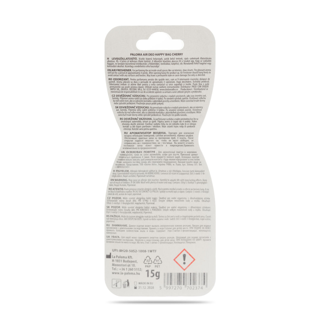 Ízléses kis tasak. A tasak belsejében illatgolyócskák találhatók, melyek több hétig kifejtik hatásukat. Használható lakásban, autóban.