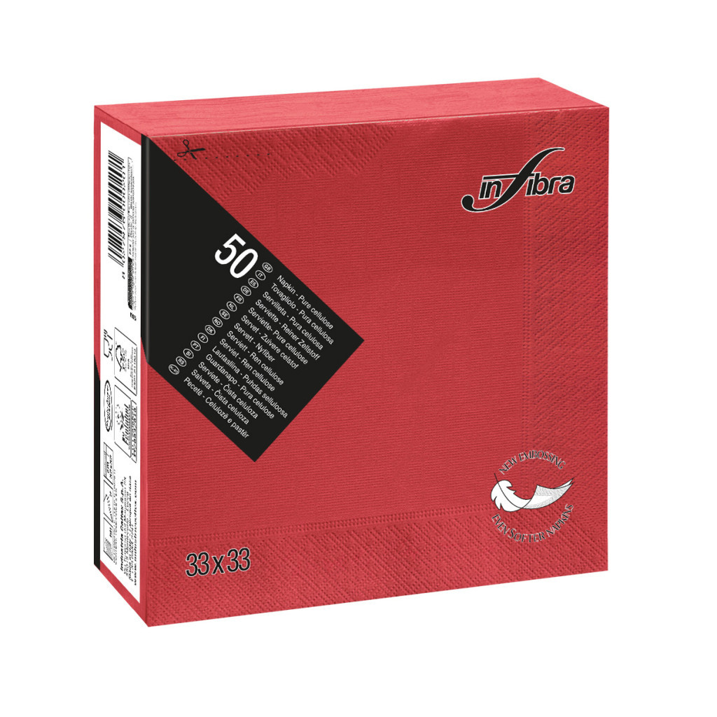 Infibra Szalvéta 33x33cm piros 2 réteg 50 lap/csomag