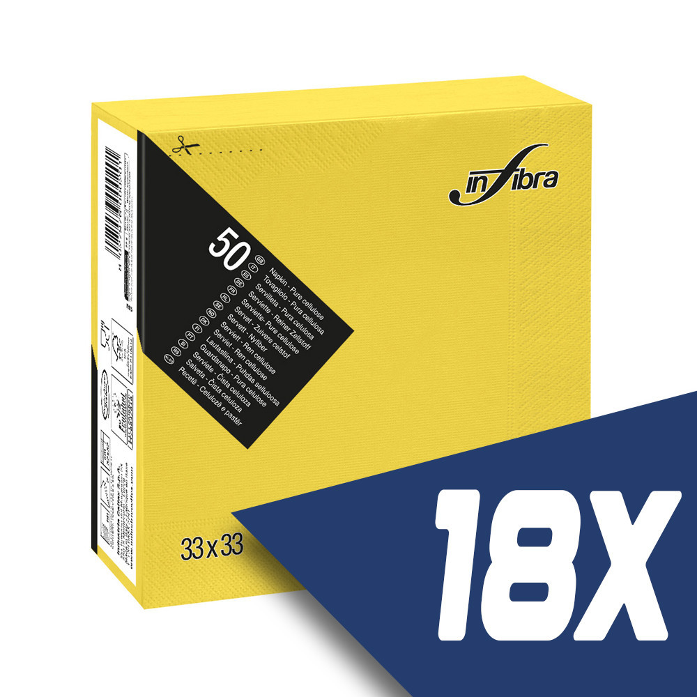 Infibra szalvéta 33x33cm citromsárga 2 rétegű 50 lap/csomag (18 csomag)
