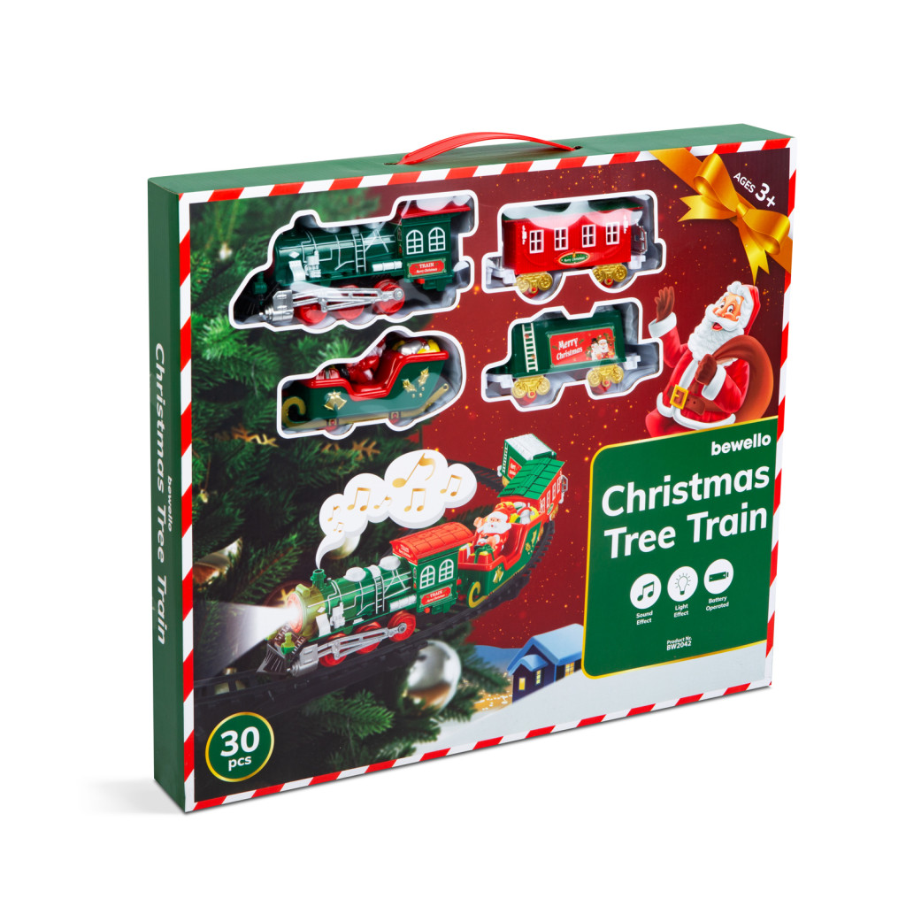 Ez a kisvonat nem csak díszít, hanem egyedülálló funkcióival az ünnepi hangulatot is fokozza. A mozdony világít, zenél, varázslatos élményt nyújt az egész családnak, ahogy eltűnik a fenyőfa díszei között a vagonokat és a Mikulás szánját húzva. Az összeszerelés nem igényel szakértelmet, pár perc alatt összerakható. A termék kiváló minőségű anyagokból készült, így hosszú élettartammal rendelkezik. A kisvasút meghajtását 2 darab AA elem biztosítja, amelyeket a mozdonyba kell helyezni, majd az oldalán lévő kapcsolóval tudja ki- illetve bekapcsolni. A vagonok sorrendjét tetszőlegesen megválaszthatja.