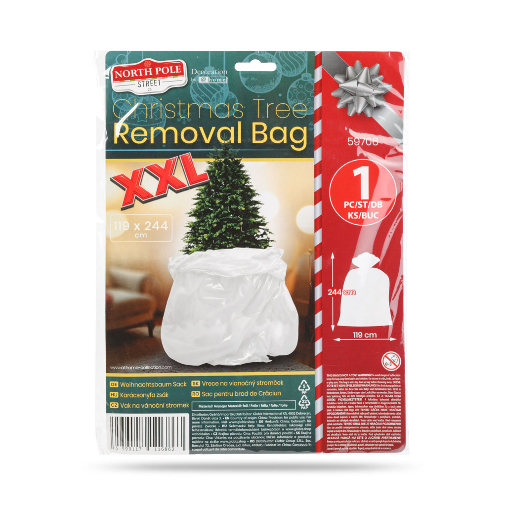 Könnyítse meg a karácsonyfa eltávolítását a lakásból,h házból, tűlevelek hullása és felesleges porszívózás nélkül, ezzel a praktikus karácsonyfa zsákkal! A nagy méretű, strapabíró fóliából készült, tökéletes megoldás élő és műfenyők szállítására vagy tárolására. Egyszerűen helyezze a zsákba a fát és vigye ki anélkül, hogy a levelek és tűlevelek szétszóródnának a lakásban.