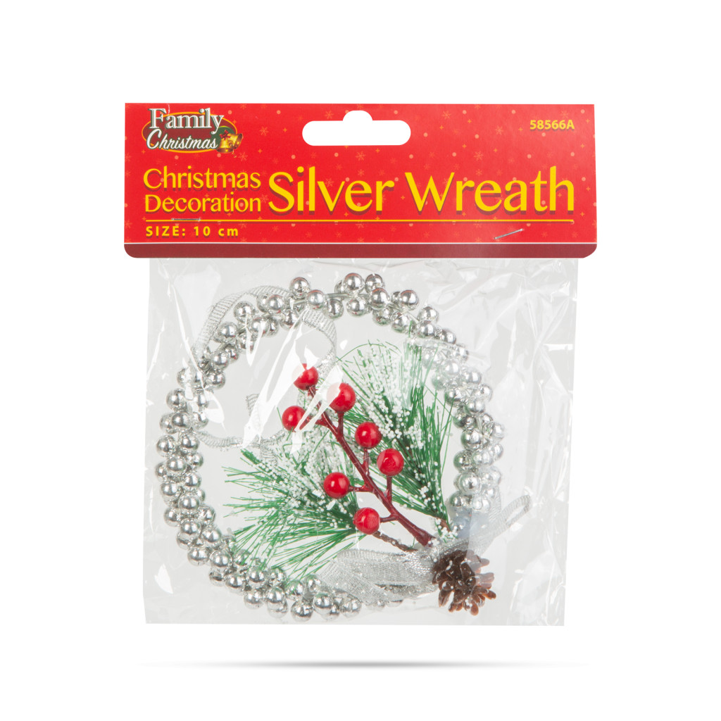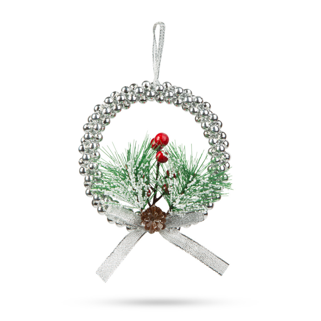Karácsonyi dekoráció - akasztható - ezüst koszorú - 10 cm