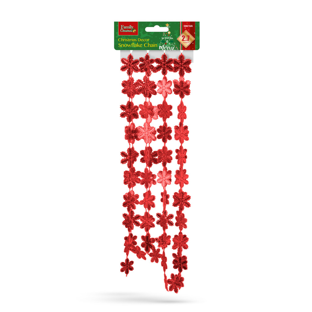 Díszítse otthonát, karácsonyfáját a szeretet ünnepén is. A csillogó, piros kis hópelyhek meghitt hangulatot varázsolnak otthonába. A 2,7 méter hosszú girland nagyméretű karácsonyfákon is jól mutat. A környezeti fények csillogása kelti igazán életre!