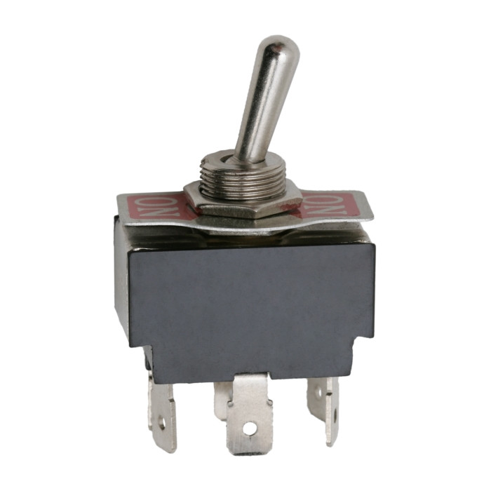 Karos kapcsoló, fém kivitel, kiválóan alkalmas műszaki gépek, berendezésekbe történő beépítésre. Maximum 10 A-ig terhelhető, fém előlappal rendelkezik.