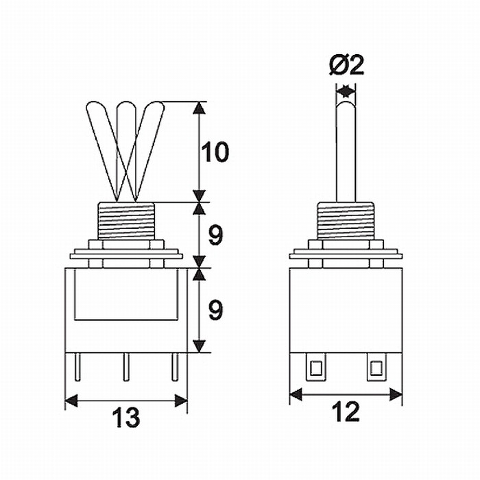 Széles körben használt karos, 2 áramkörös, 3 állású kapcsoló. Beépíthető elektromos gépek, műszaki eszközök kezelőpaneljébe.