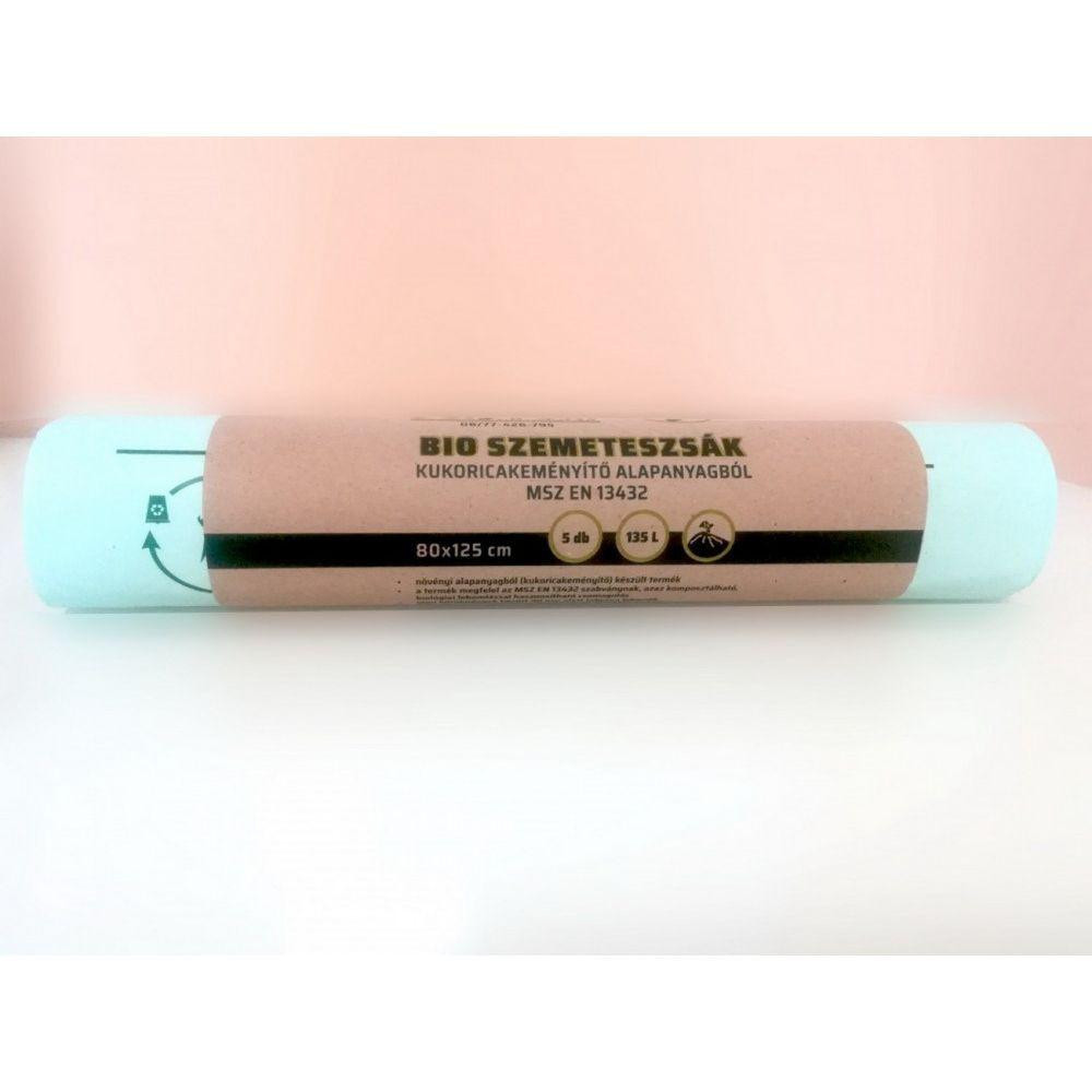 - Lebomló szemeteszsák, kukoricakeményítő alapú, PLA, 800x1250x0.03 mm, 135 literes (valós méret 200L), 5 db/tekercs