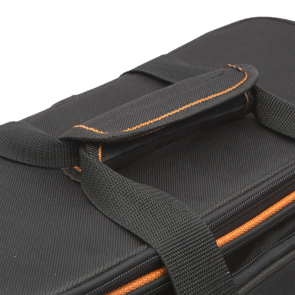 Akár kézben, akár vállon hordozásra is alkalmas, állítható vállpánttal.