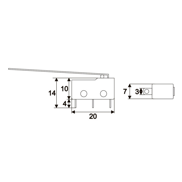 Fekete, 1 áramkörös KW4A(S) mikrokapcsoló karral. Előnye a biztonságos, gyors működés és kis méret. Hosszú élettartam, nagy megbízhatóság jellemzi. Széles körben használják háztartási eszközökben, elektronikai berendezésekben vagy autóelektronikában.