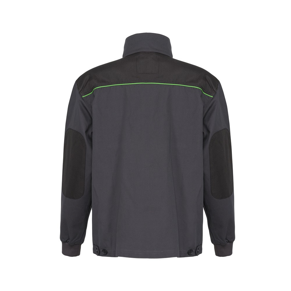 A kabátot megerősített könyökfoltok és gumírozott mandzsetták jellemzik, melyek növelik a tartósságot és kényelmet biztosítanak. A multifunkcionális zsebek lehetővé teszik a munkaeszközök praktikus tárolását, míg az álló gallér védelmet nyújt a szél és por ellen. Az állítható derékalj segíti a testreszabott illeszkedést.