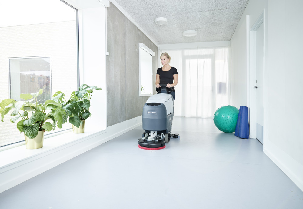 A jól bevált Nilfisk technológiájával tervezett és épített SC401 növeli a napi tisztítási hatékonyságot, pl. irodákban, boltokban, szállodákban, iskolákban, kórházakban, munkahelyeken, stb. A 43 cm-es, kefével vagy paddell ellátott padlótisztító biztosítja a magas szintű és állandó tisztítási hatékonyságot. Az ívelt felszívófej által biztosított kiemelkedő vízelvezetésnek köszönhetően a padló teljesen száraz marad - és hosszú ideig fenntartható a tisztaság: Akár 4 órányi folyamatos súrolás és szárítás érhető el teljesen feltöltött akkumulátorral, és akár 100 percnyi működés tartály újratöltés nélkül.