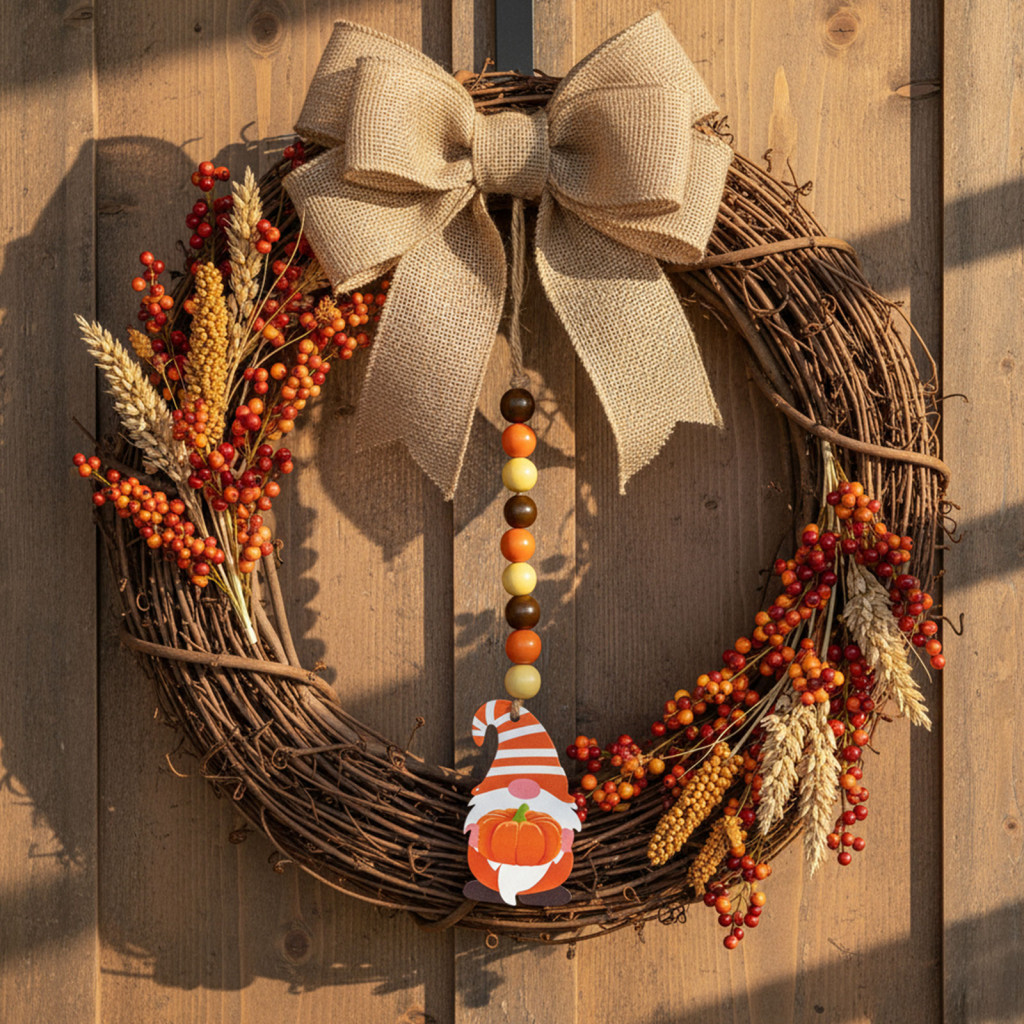 Dobja fel otthonát az ősz meleg árnyalataival, ezzel a skandináv manó formájú dekorációval! Fából készült, gondosan kidolgozott függődísz tökéletes választás ajtókra, ablakokra, polcokra vagy akár szezonális koszorúk kiegészítésére. A dekoráció élénk színeivel és részletes grafikájával hűen visszaadja az ősz hangulatát. A fából készült gyöngyök és a természetes juta kötél praktikus és stílusos megoldást nyújtanak a rögzítéshez.