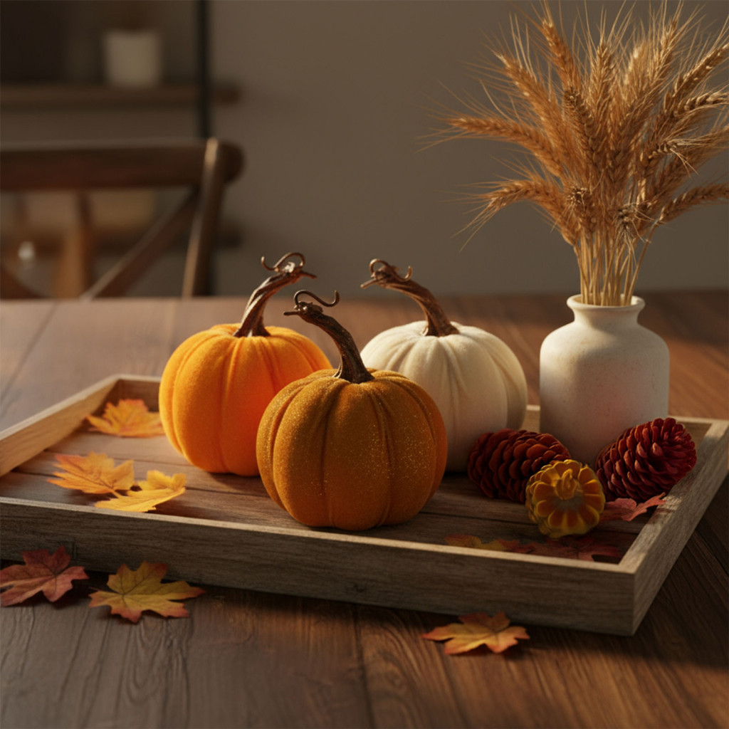 Csillogó, glitteres borítással rendelkező csodaszép dekor tökök. Felhasználásuknak csak a képzelete szab határt, kiváló díszítő eszköze az őszi, szürke hétköznapoknak, használhatja kompozíciók részeként, de önmagukban is megállják a helyüket polcon vagy asztali díszként. Kiváló választás a Halloween megünneplésére is.