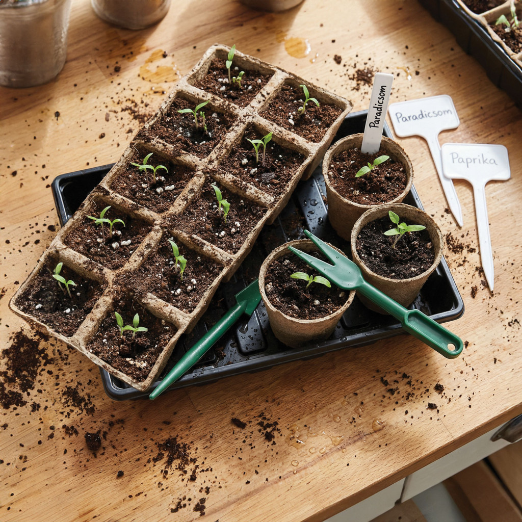 Tőzegcserepek, palántatálca, jelölők, ültetőpálcák |
