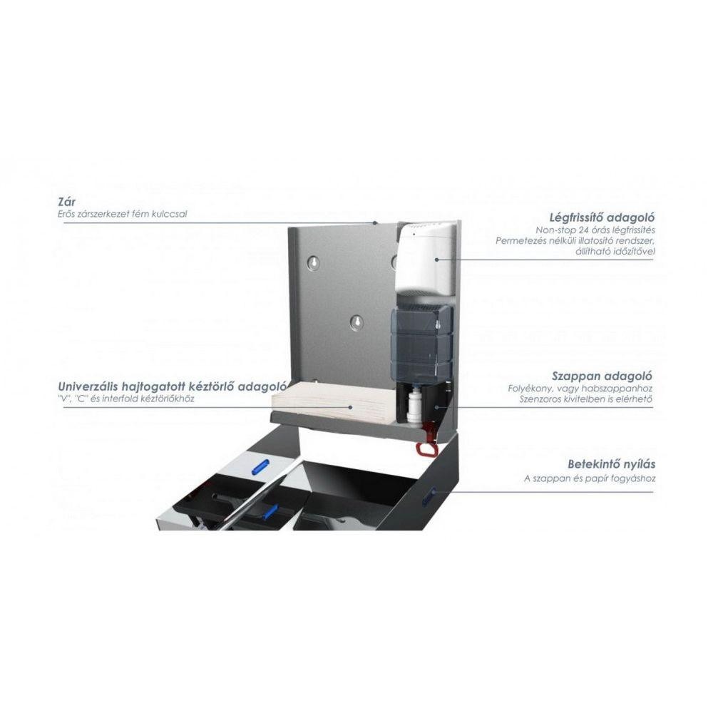 - Rozsdamentes multifunkciós adagoló SCI (tükör, kéztörlő adagoló, folyékony szappan adagoló, illatosító)