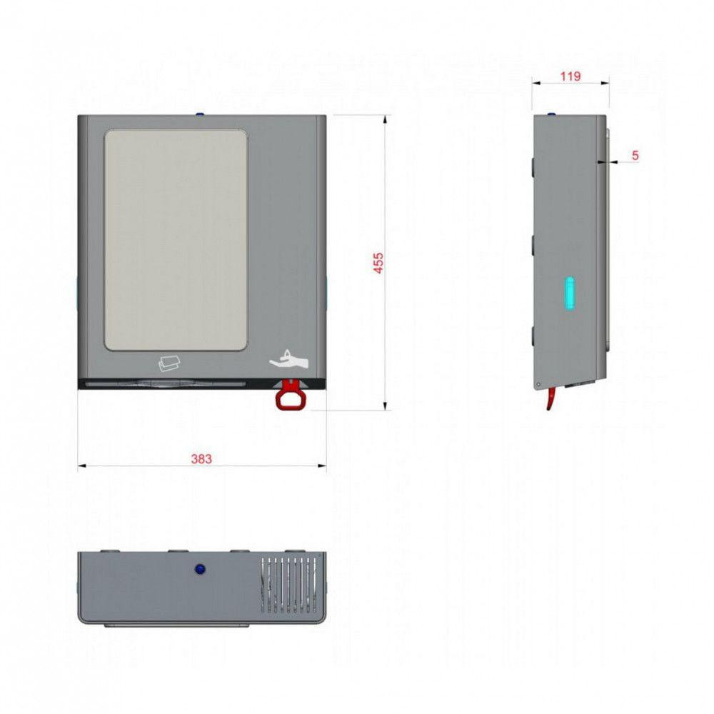 - 455 x 383 x 119 mmEz a praktikus, kompakt méretű, multifunkciós adagoló ideális választás lehet újonnan épülő, vagy felújított mosdóhelyiségekbe.