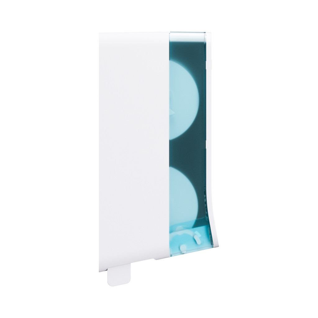 A System Twin toalettpapír adagoló praktikus és gazdaságos megoldás minden forgalmú mosdóba. A rendszer két toalettpapír tekercset fogad, és egy intelligens tekercsváltó mechanizmus biztosítja, hogy a második tekercs csak az első elfogyása után legyen használható, így csökkenti a pazarlást és folyamatos ellátást biztosít. A nagy kapacitásnak köszönhetően ritkább utántöltést igényel, ezért különösen alkalmas közepes és nagy forgalmú mosdókba.