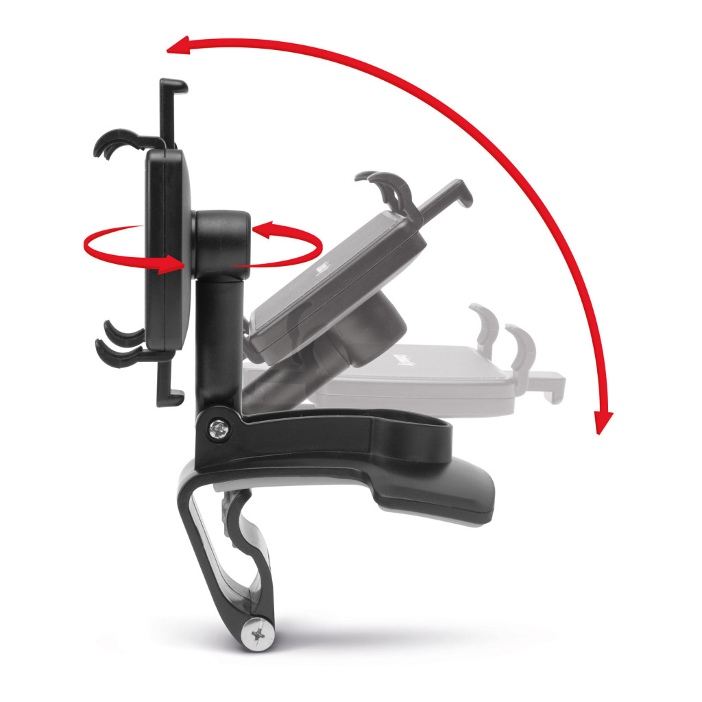 Bármilyen autóval kompatibilis, erős, csipeszes kivitelű telefontartó, amely a kormány mögötti műszerfal árnyékolóra rögzíthető, így látóterében tartja mobilkészülékét. Előnye, hogy nem szükséges tapadókoronggal rögzíteni a szélvédőn és nem akadályozza a szabad légáramlást sem a szellőzőrácsoknál. Ha több autót használ egy mozdulattal átrakható egy másikba autóba, a nagy feszítőerővel rendelkező rugó minden körülmények között stabilan tartja a konzolt.