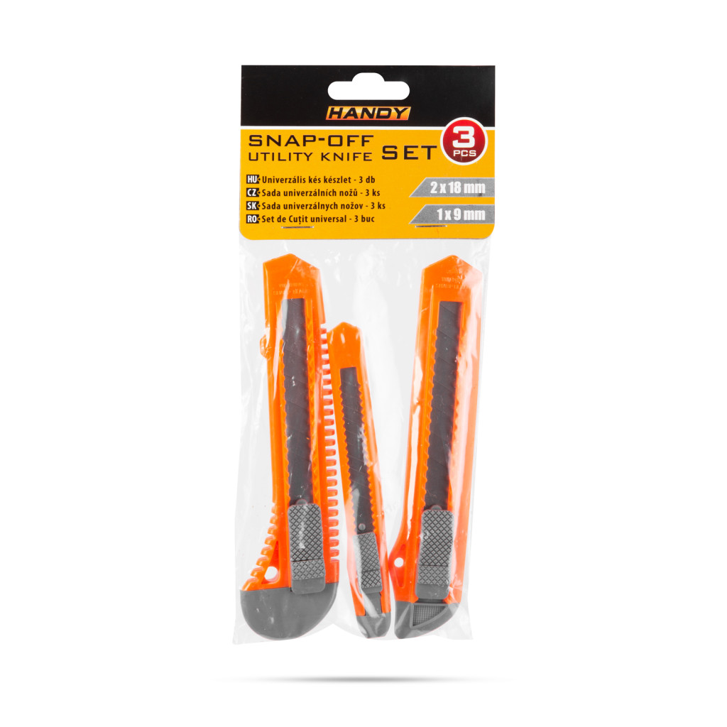 Törhető pengével ellátott univerzális kés, sniccer szett. Ideális lehet tapétázáskor, háztartás körüli munkák során. A készletben lévő, különböző szikéknek köszönhetően mindig megtalálja a munkafolyamathoz szükséges pengét.