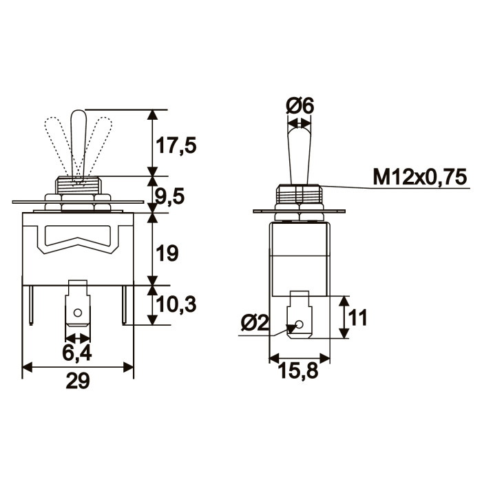 Visszaálló karos kapcsoló, fém kivitel, kiválóan alkalmas műszaki gépek, berendezésekbe történő beépítésre. Maximum 10 A-ig terhelhető, fém előlappal rendelkezik. Strapabíró kivitel.