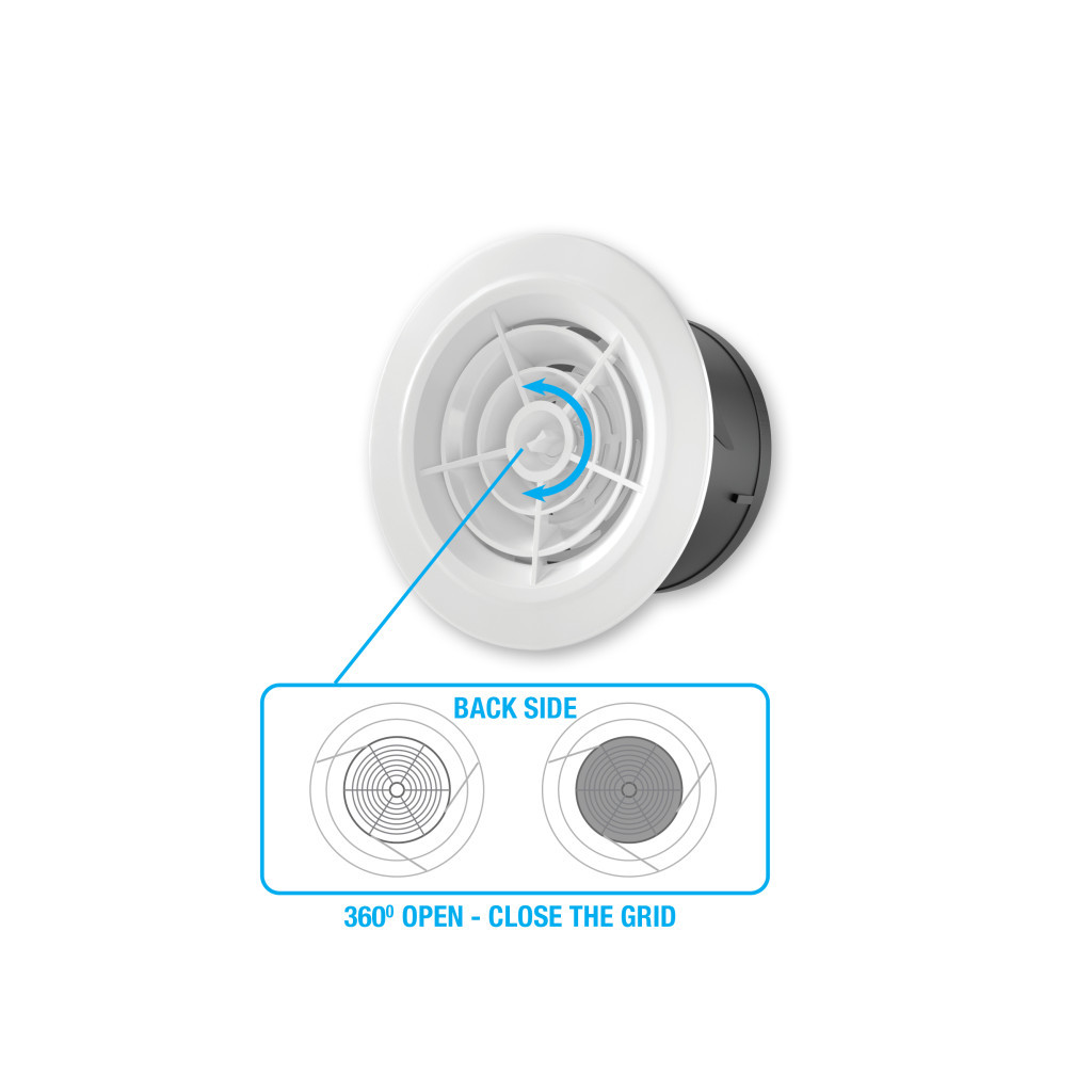 Kerek szellőzőrács állítható, zárható.