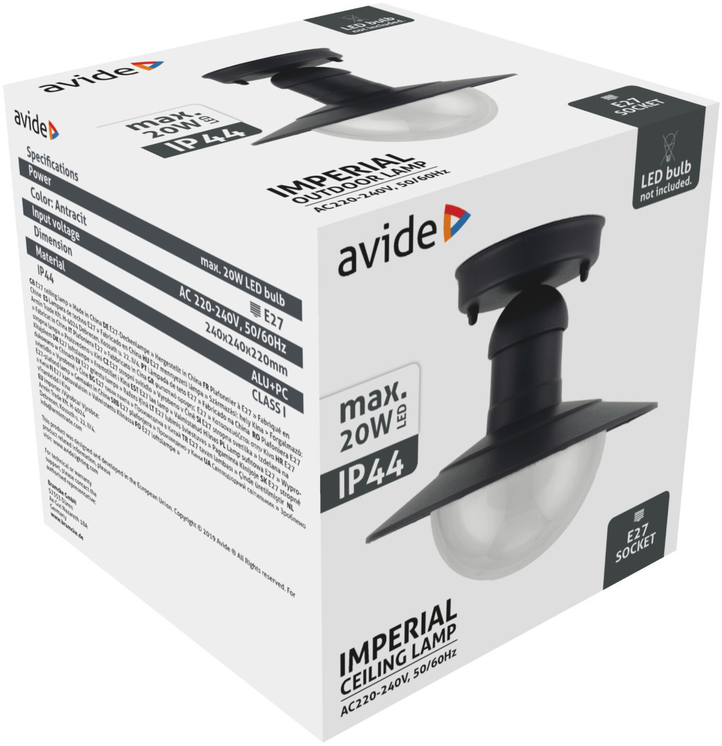 Avide Kültéri Mennyezeti Lámpa Imperial 1xE27 IP44 Antracit