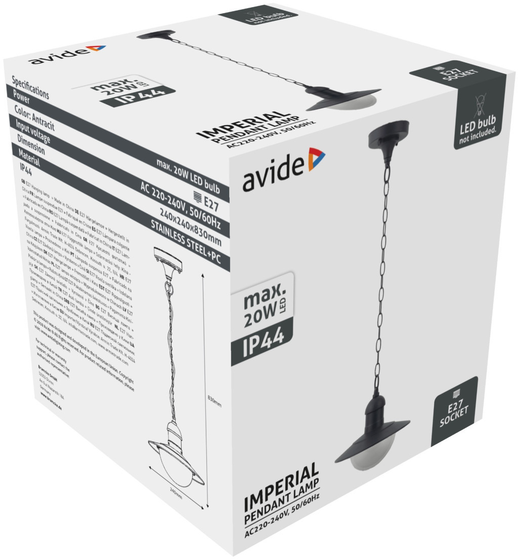 Avide kültéri függesztett lámpa Imperial 1xE27 IP44 Antracit