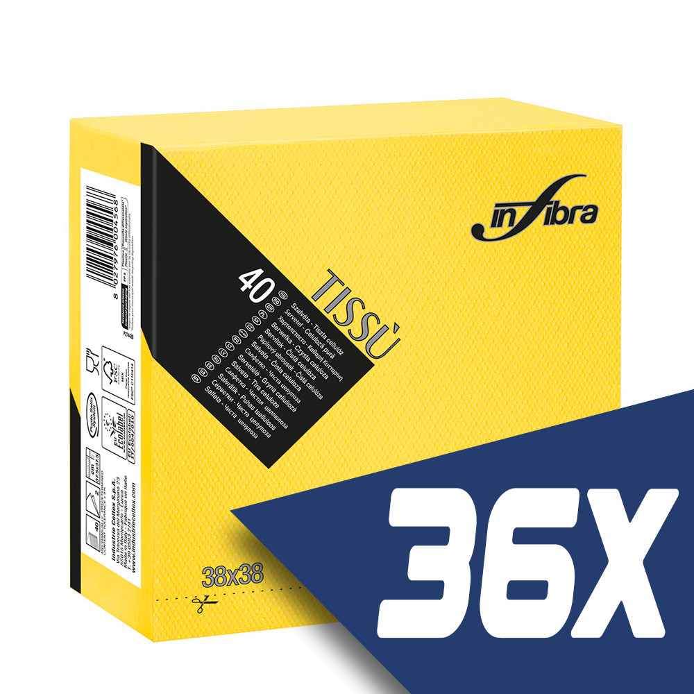 Infibra Szalvéta 38x38cm Sárga 2 réteg 40 lap/csomag (36 csomag)