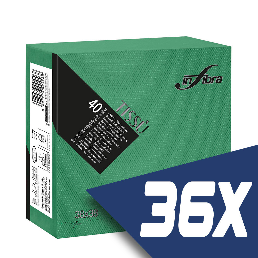 Infibra Szalvéta 38x38cm Sötétzöld 2 réteg 40 lap/csomag (36 csomag)