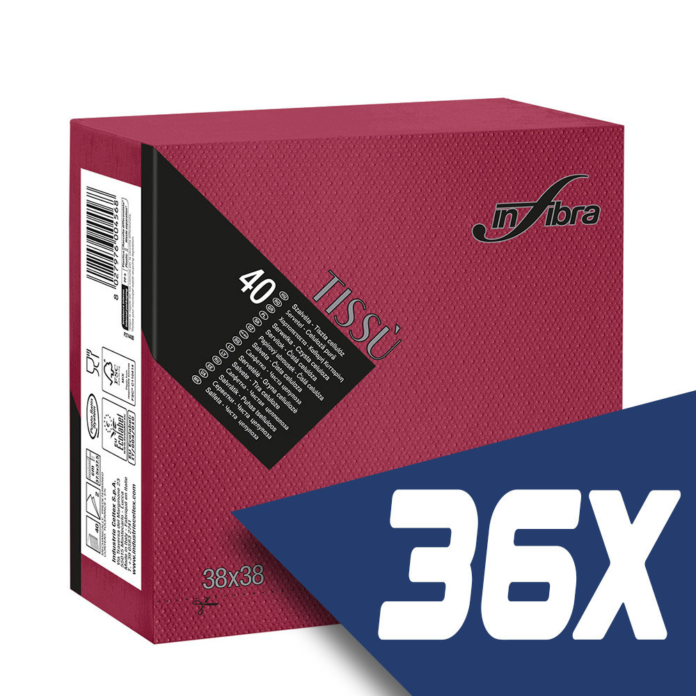 Infibra Szalvéta 38x38cm Bordó 2 réteg 40 lap/csomag (36 csomag)