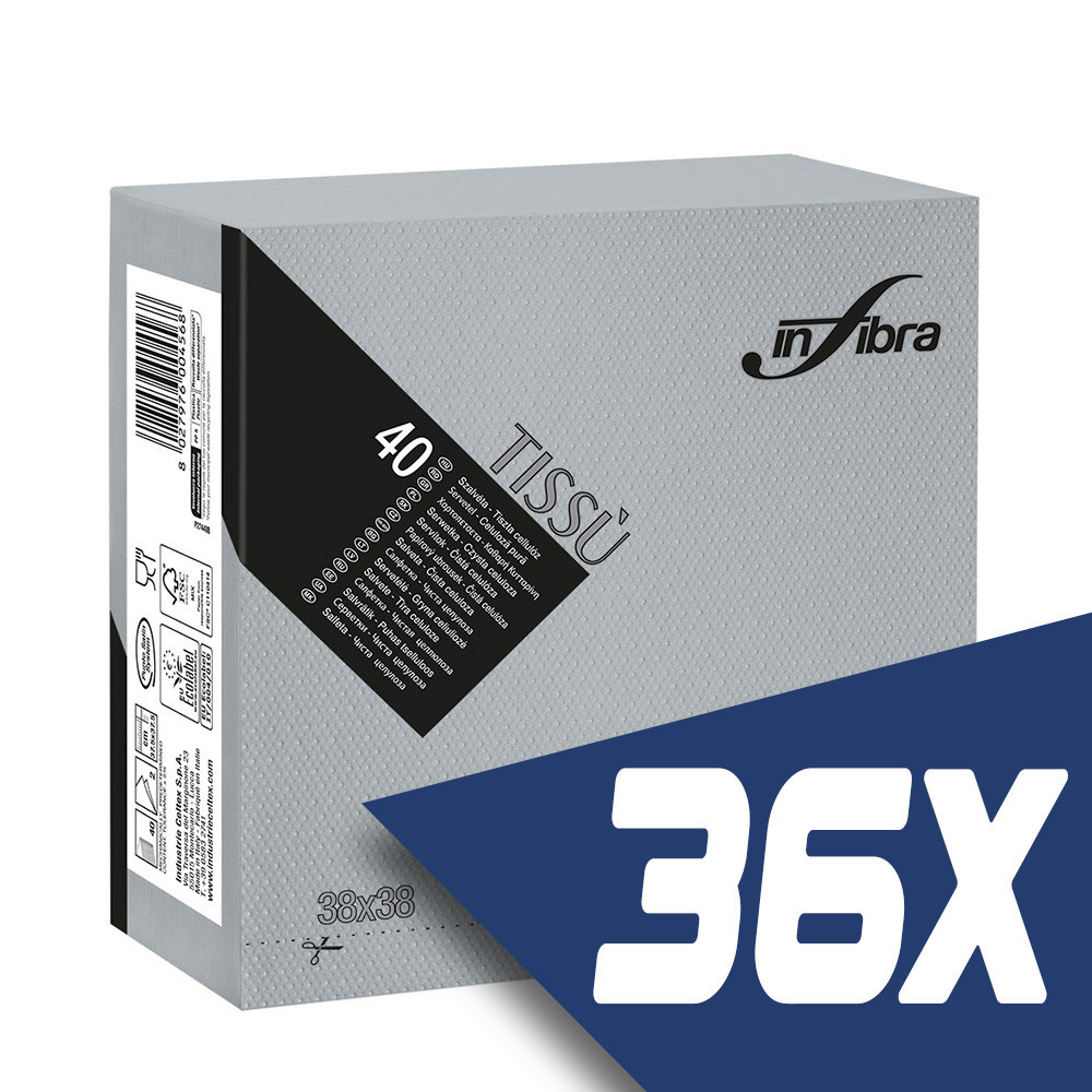 Infibra Szalvéta 38x38cm Szürke 2 réteg 40 lap/csomag (36 csomag)